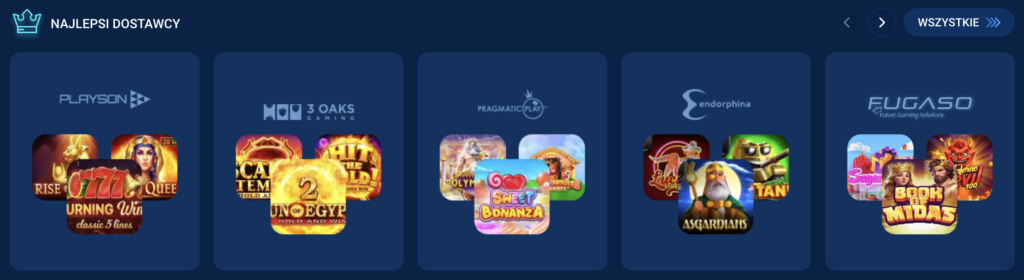 W naszej ofercie znajdziesz setki automatów o zróżnicowanej tematyce i funkcjach, dostarczanych przez takich dostawców jak NetEnt, Pragmatic Play, Microgaming czy Yggdrasil. Różne poziomy zmienności oraz dodatkowe opcje, takie jak darmowe spiny i rundy bonusowe, zapewniają wciągającą rozgrywkę i szansę na wysokie wygrane.